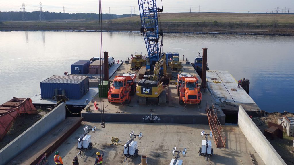 We also offer extensive dockside laydown and storage facilities, along with welding and fabrication capabilities. Our dockside mobilization and demobilization utilize heavy-lift capabilities, enabling us to load and unload vehicles, railcars, containers, and large equipment onto barges or vessels from our dockside location. Strategically located on the Elizabeth River, just off the Chesapeake Bay, our facility provides optimal access for your operations. We can safely accommodate barges up to 300 feet long and 100 feet wide, ensuring you have the space needed to efficiently complete your projects. Count on us for all your maritime needs.