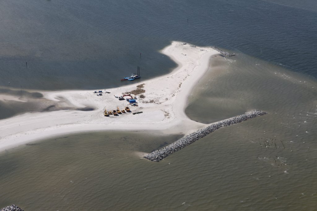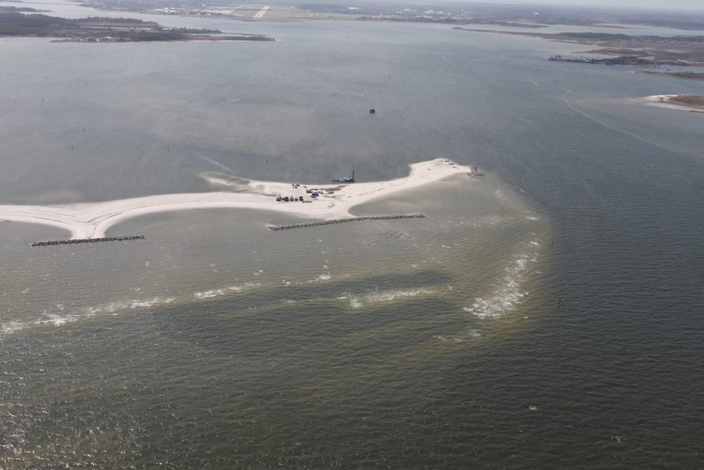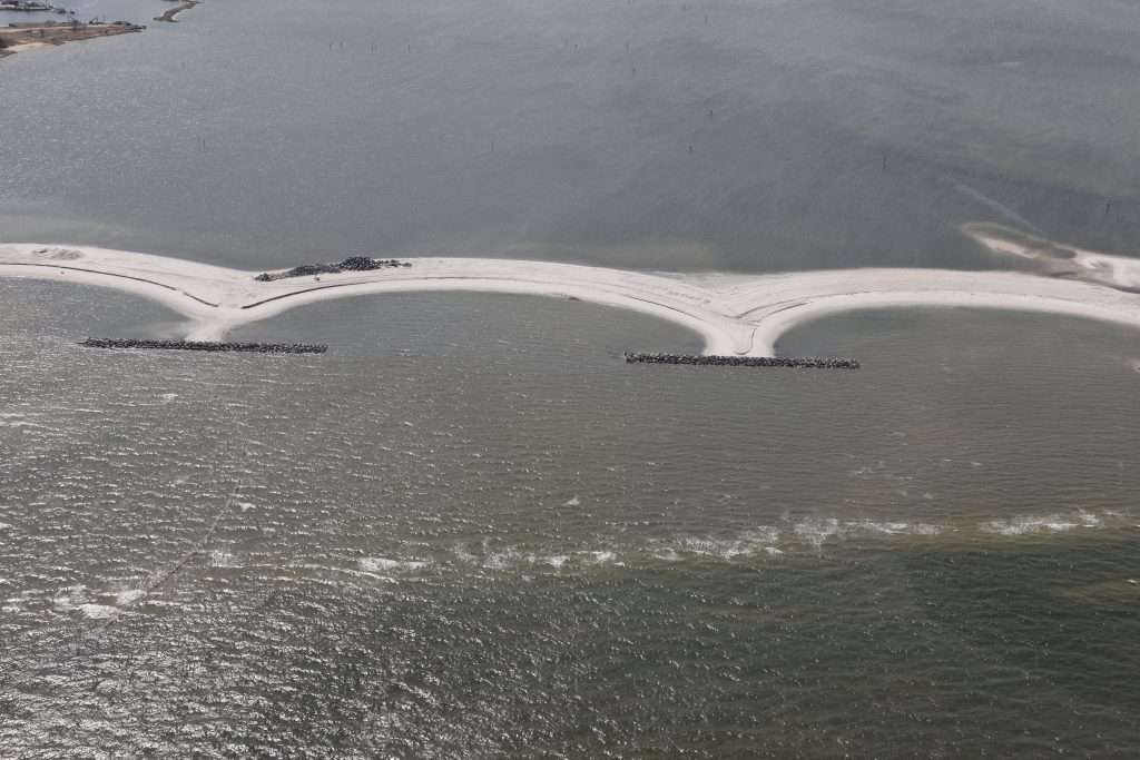 Precon conducted offshore hydraulic dredging to remove approximately 145,000 cubic yards of sand. The hydraulically dredged sand was used to create a sandy recreational beach and construct tombolos (sandbars) to enhance the beach area. Then, a 100-foot-wide channel was mechanically dredged to a depth of -6 Mean Water Level (MWL) at Wallace Creek and Long Creek.