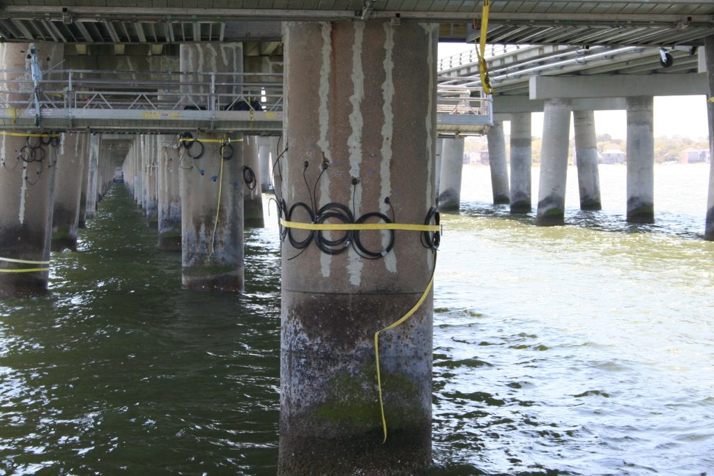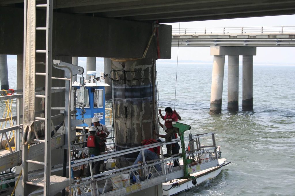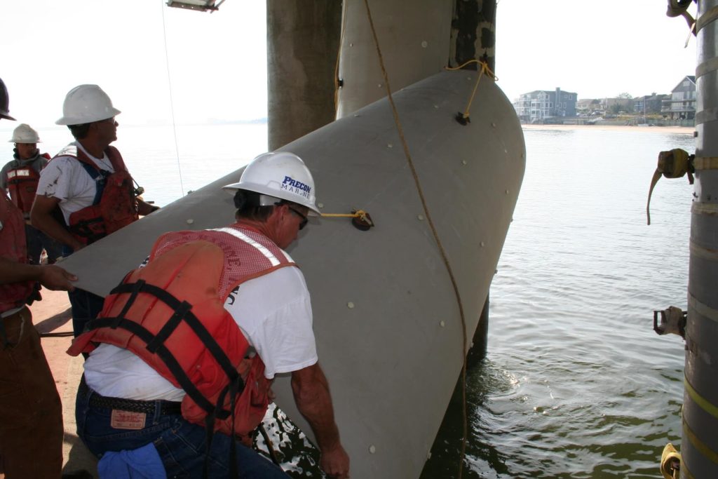 This project consisted of encapsulating 200+ each 64” cylinder piles with cathodic protection jackets. Life jackets were installed along with all of the wiring and zinc anodes to protect the piles for the next 50 years. The project also consisted of installing above-water and underwater carbon fiber wraps and performing crack injection/concrete spall repair.