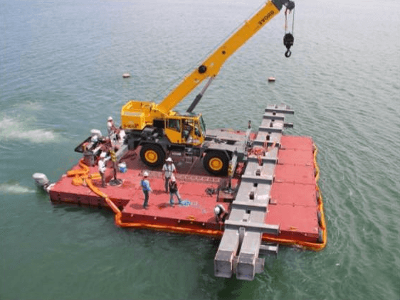 Sectional Barges SECTIONAL BARGES RENTAL Precon Marine offers a huge inventory of approximately 120 sectional barges and attachments, including : Flexifloats 40 x 10 x 7 20 x 10 x 7 40 x 10 x 5 Poseidons 40 x 10 x 7 20 x 10 x 7 We also have a selection of round 18” spuds, as well as winch mount brackets, hydraulic winches, and hydraulic power packs. Interested in renting any of our Sectional BARGES? Give us a call today. Call Us: 757-545-4400 1401 Precon Drive, Suite #102Chesapeake, VA 23320Phone: 757-545-4400Email: info@preconmarine.com